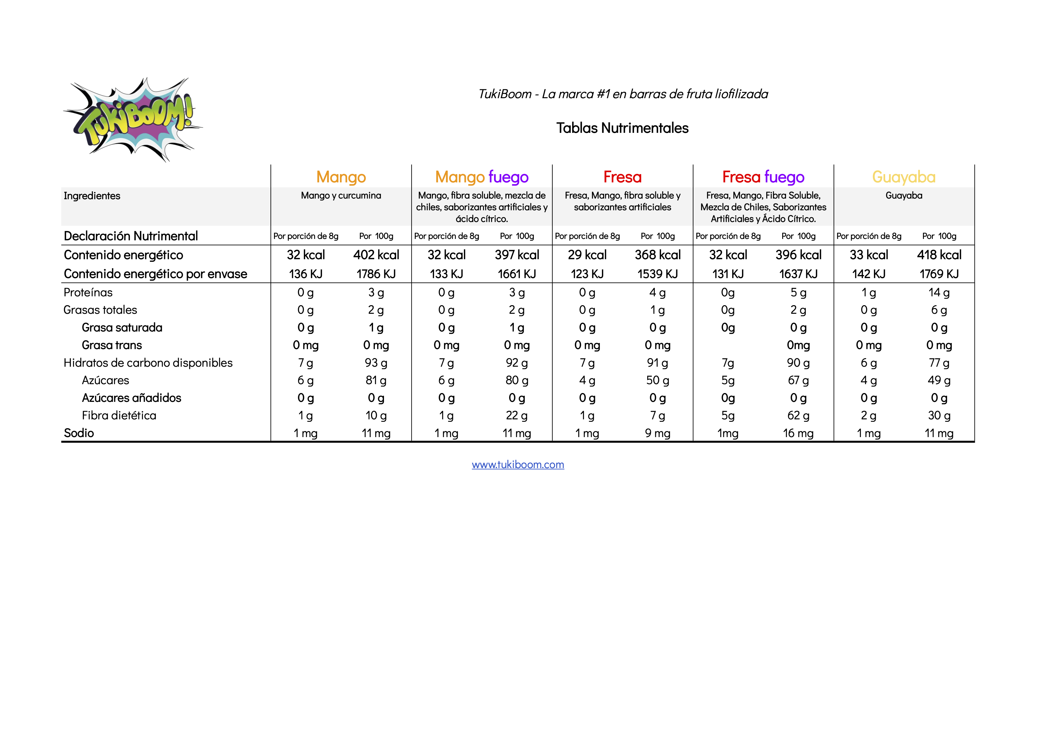 Los productos de TukibBoom no tienen sellos de advertencia porque no contienen azúcares, grasas ni sodio añadidos. Cumplen totalmente con la normativa oficial para evitar los sellos, tal y como se muestra en las Constancias Sin Sellos.